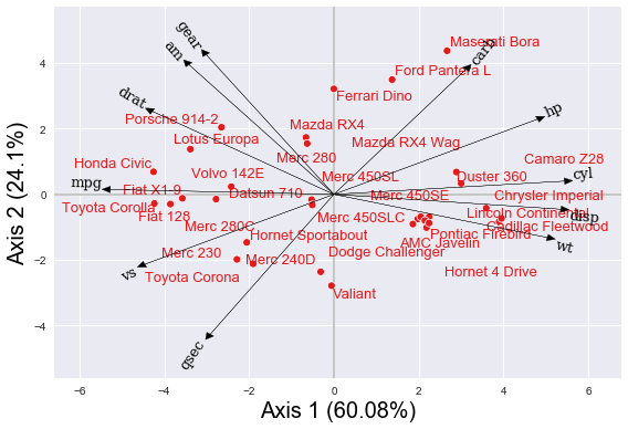 PyBiplots ist eine Python-Bibliothek, die die klassischen Biplot-Methoden implementiert. Diese Methoden sind GH-Biplot, JK-Biplot und HJ-Biplot.